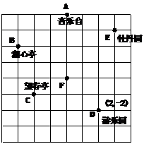 23.王霞和爸爸、妈妈到人民公园游玩,回到家后,她利用平面直角坐标系画出了公园的景区地图,如图所示。可是她忘记了在图中标出原点和x轴、y轴。只知道游乐园D的坐标为(2,-2),你能帮她求出其他各景点的坐标?(8分)
