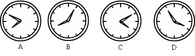小亮在镜中看到身后墙上的时钟如下, 你认为实际时间最接近8:00的是 ( ).