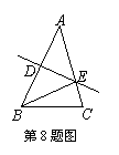 8.如图,在△ABC中,BC = 8cm,AB的垂直平分线交AB于点D,交边AC于点E,△BCE的周长等于18cm,则AC的长等于( ).