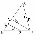 如图,已知∠1=∠ACB,∠2=∠3,FH⊥AB于H,试说明:CD⊥AB.(6′)