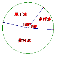 29、某县水源缺乏,如图所示是该县水源的扇形统计图,计算并回答:(1)黄河水在总供水中所占比例;(2)设占比例最少的水库水为1,求水库水、地下水、黄河水之比
