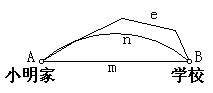14. 明从家到学校有三条路线,则最近的一条路线为AmB,