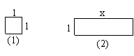 27.很多代数原理可以用几何模型解释,用图(1)来表示1×1的正方形面积,它的长和宽都是一个单位,用图(2)来表示1×x的矩形的面积,它的宽是一个单位,长是x个单位。请你用上述若干个1×1的正方形和若干个1×x的矩形来拼出3(x+2)和3x+2(要求画出简单的示意图,且使得拼出的图形为矩形),由此请你简单地加以说明这两个代数式的不同之处。