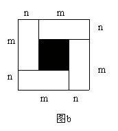 图a是一个长为2 m、宽为2 n的长方形, 沿图中虚线用剪刀均分成四块小长方形, 然后按图b的形状拼成一个正方形。