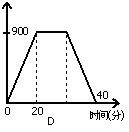 13.张大爷出去散步,从家走了20分钟,到一个离家900米的阅报亭,看了20分钟报纸后,用了15分钟返回家,下图中哪个图形表示张大爷离家时间与距离之间的关系?