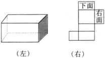 4.如图,右图是左图表面的展开图,右图已有两个面标出是长方体的下面和右面,请你在右图中把长方体的其他面标出来.