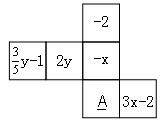 右图是一个正方体的展开图,标注了字母A的面是正方体的正面,如果正方体的左面与右面所标注代数式的值相等,上面与下面所标注代数式的值的和恰好等于后面所标注的式子,求x与y的值.(本题6分)