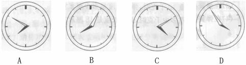 6.小亮在镜中看到身后的时钟如图,你认为实际时间最接近八点的是 ( )