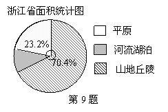 9、浙江省的总面积为10.18万平方千米,它由山地