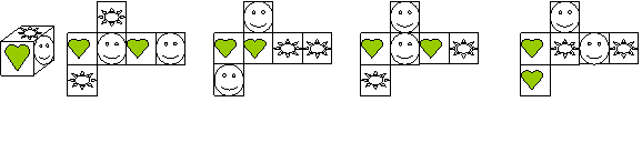 2、小丽制作了一个如下左图所示的正方体礼品盒,其对面图案都相同,那么这个正方体的平面展开图可能是( )