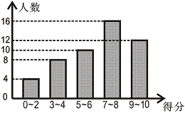 某公司对职员的文化素质考核成绩进行统计分析,各分数段的人数如图所示,考核采用10分制,若得分在5分以上算合格,那么这次考核该公司职员的合格率是( )