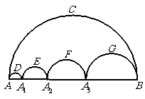 图中的五个半圆,邻近的两半圆相切,两只小虫同时出发,以相同的速度从A点到B点,甲虫沿![]()