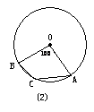 11、如图(2),已知圆心角∠AOB的度数为100°,则圆周角∠ACB的度数是( )