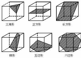 (1)用一个平面去截正方体,可能出现下面几种情况:(括号内的是出现的截面形状)