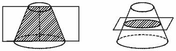 用平面截圆台,截面形状会有圆和梯形这两种较特殊图形,截法如下: