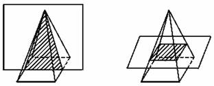 由于棱锥同时具有棱柱的侧面是平面的特点,又具备了圆锥的锥点的特征.所以截面形状必须兼顾这两方面.截面可能出现的形状是三角形、多边形、梯形.