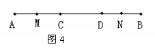 (14分)如图4,AB=24cm,C、D点在线段AB上,且CD=10cm,M、N分别是AC、BD的中点,求线段MN的长.