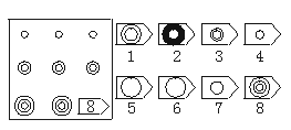 9.下面有一张大图,这张大图的右下方有一块空白,是要填空的.填什么,请看大图右方若干个标有数码的小图.它们的大小、形状与右下角空白处一样.请将你要填的图的数码号写入空白处,使大图成为一张图形完整、协调一致的图.