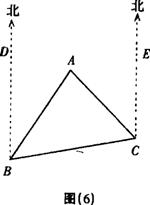 27、(6分)如图(6),A岛在B岛的北偏东30°方向,C岛在B岛的北偏东80°方
