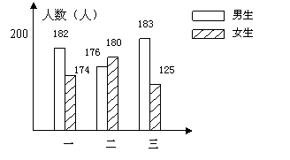 11、如图,是一个条形图,它表示某中学初中年级男女生人数,从图中可知初中___年级的总学生数最少,初中____年级女生最多。