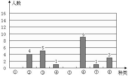 24、小红针对八种蔬菜,对他们班做了“你最喜欢吃哪一种蔬菜”的调查。并记录数据如下表: