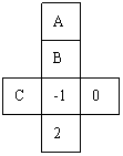如图是一个正方形盒的展开图,若在其中的三个正方形A、B、C 、内分别填入适当的数,使得它们折成正方形后相对的面上的两个数互为相反数,则 填入正方形A、B、C内的三个数依次为(