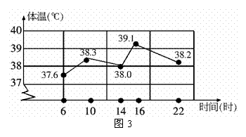 图3是护士统计一位病人的体温变化图,这位病人中午12时的体温约为( ).
