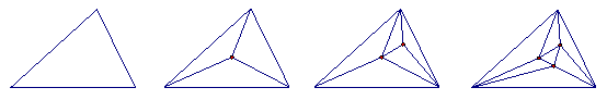 如图3,原三角形内部有3个不同点时,原三角形可被分成7个三角形;…………