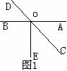 10、如图1,AB、CD交于点O,∠AOE=90°,若∠AOC:∠COE=5:4,则∠AOD等于 ( )
