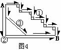 5、如图4,从A地到B地有三条路①②③可走,每路长分别为l,m,n(图中“┌”、“┘”、“└”表示直角),则第_______条路最短,另外两条路的长短关系是______.
