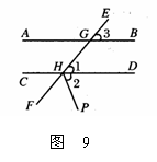 9、如图9,已知AB//CD, ∠AGH=![]()