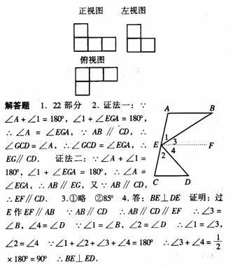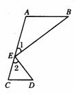 4、如图,AB//CD,∠1=∠B,∠2=∠D ,A、E、C在同一直线 上。试问,BE和ED具备哪种位置关系?