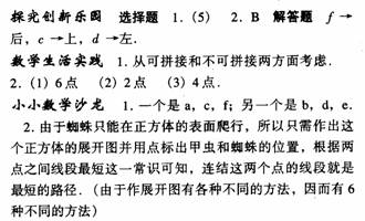 2、如图所示,在正方体两个相距最远的顶点处逗留着一只甲虫和一只蜘蛛.蜘蛛可以从哪条最短的路径爬到甲虫处?说明你的理由。