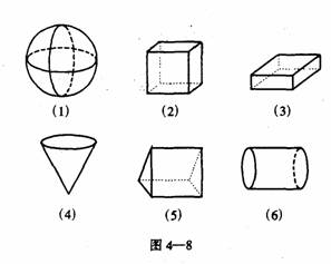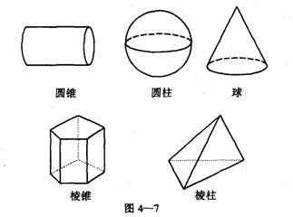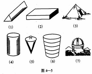 5、如图4-5是一些具体的图形-三棱镜、方砖、帆布帐篷、笔筒、铅锤、粮囤、天文台,![]()