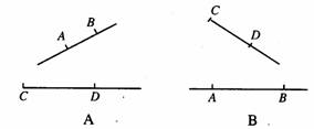 3、根据直线、射线、线段各自的性质,如下图,能够相交的是( )