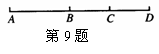 9、如第9题图,若AD=7厘米,BD=4厘米,且C这BD的中点,那么AC= 厘米。