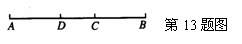 13、如第13题图所示,已知C点分线段AB为5 :3,D点分线段AB为3:5,CD长为10cm,那么AB的长为 厘米。