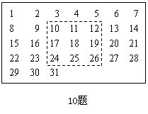 10.如图是某月份的月历,用正方形圈出9个数,设最中间一个是x,则用x表示这9个数的和是___;