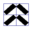 24. 用四块如图(1)所示的瓷砖拼成一个正方形图案,使拼成的图案成一个轴对称图形(如图2),请你分别在图(3)、图(4)中各画一种与图(2)不同的拼法,要求两种拼法各不相同,且其中至少有一个图形既是中心对称图形,又是轴对称