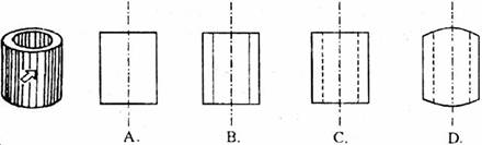下面是空心圆柱体在指定方向上的视图,正确的是 (