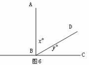 6. 如图6,AB⊥BC,∠ABD的度数比∠DBC的度数的两倍少15°,设∠ABD和∠DBC的度数分别为x、y,那么下面可以求出这两个角的度数的方程组是( )