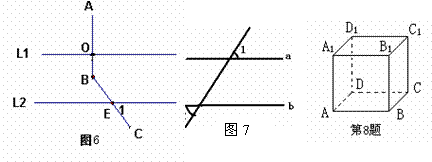 6.(河南省2003年)如图,直线L1//L2,AB⊥L1,垂足为O,BC与L2相交于点E,
