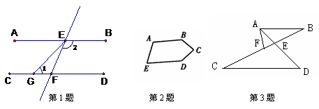 1.(2005广东中考题)如图,AB∥CD,直线EF分别交AB、CD于点E、F,EG平分∠AEF,∠1=40°,求∠2的度数。