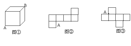 图①中,A为正方体的顶点,在另一顶点B处有一昆虫.图②、图③是正方体的两个不同展开图,根据A、B位置的特点,请你在图②、图③中分别标出昆虫B的位置.