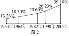 城镇人口占总人口比例的大小表示城镇化水平的高低,由下面统计图(如图2)可知,我国城镇化水平提高最快的时期是______.