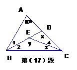 17.如图,∠1=∠2=300,∠3=∠4,∠A=800,则