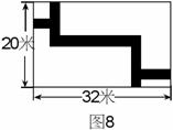 (本题13分)如图8所示,在长方形地块内修筑同样宽的两条“之”字路,余下部分作为耕地,道路宽为