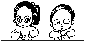 ”(两个圆、两个三角形、一组平行线)为条件,在下列空白处,画出一个独特且有意义的图形,并写上一两句贴切、诙谐的解说词,例如.