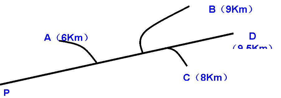 8、同学们游完动物园,准备登A、B、C、D中的某山,计划上午9点由动物园(图中的P点)出发,尽可能去最远的山,到山顶后,休息1小时,到下午3点以前返回到P地,若去时步行平均速度为3千米/时,返回的步行平均速度为4千米/时。试问同学们能登上哪座山的山顶呢?