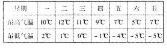 6、某地一周内每天的最高气温与最低气温记录如下表,哪天的温差最大?哪大的温差最小?(6分).